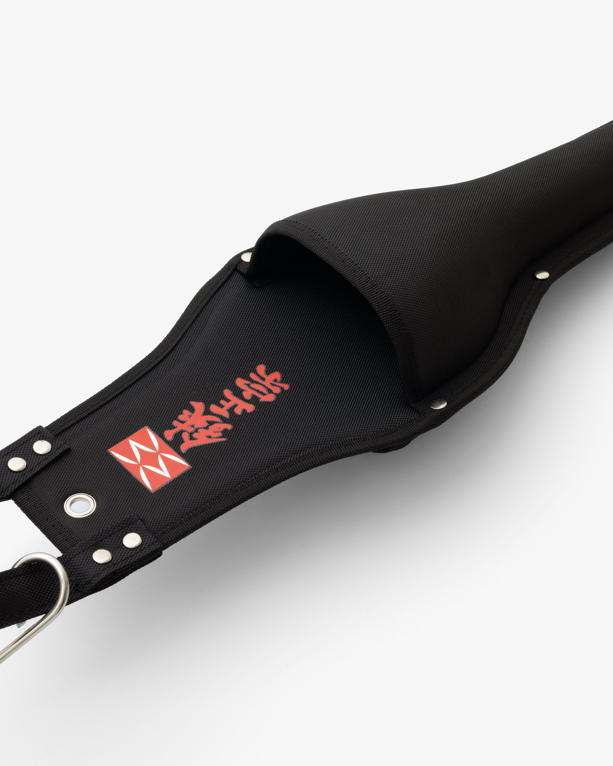 - Viršuje dėklo didelis metalinis kablys – patogu pasikabinti ant kopėčių darbo metu