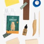 - Rinkinyje dvi kaladėlės – medienos ruošiniai. Liepmedis – draugiškiausia mediena drožinėjimui – pakankamai minkšta, bet pilnavidurės struktūros, neskylanti.